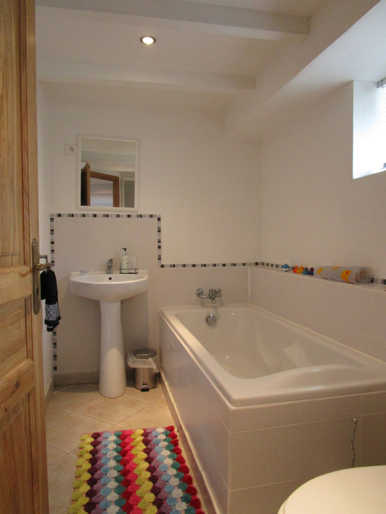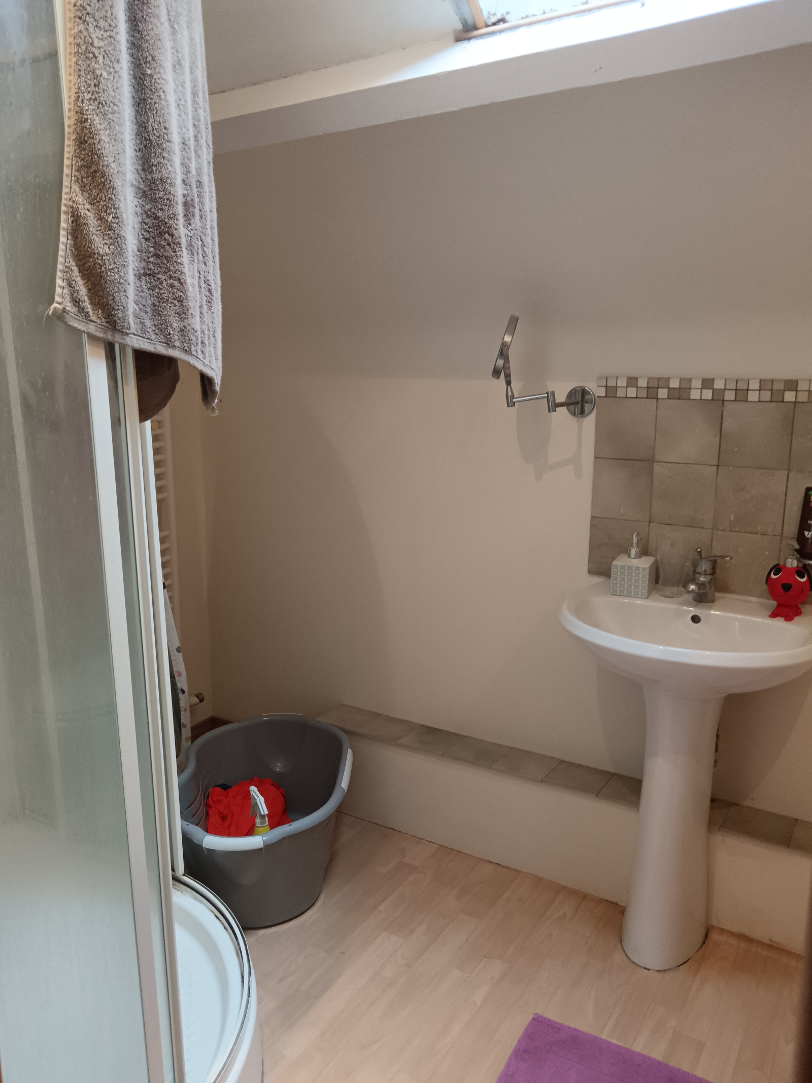 - sous-sol : pièce aménagée avec salle de bains/WC.
