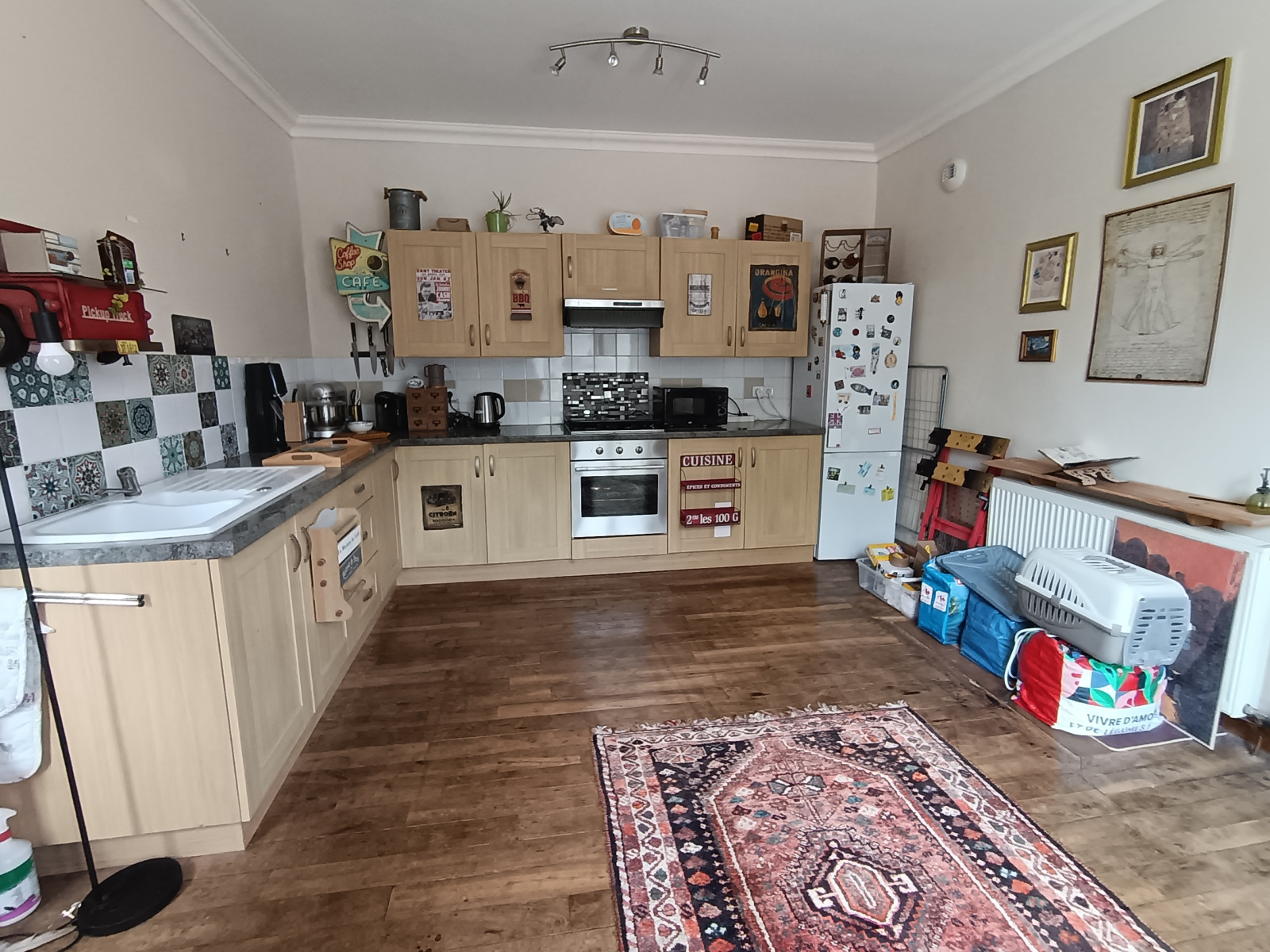 - au rez-de-chaussée : entrée, salon et cuisine équipée