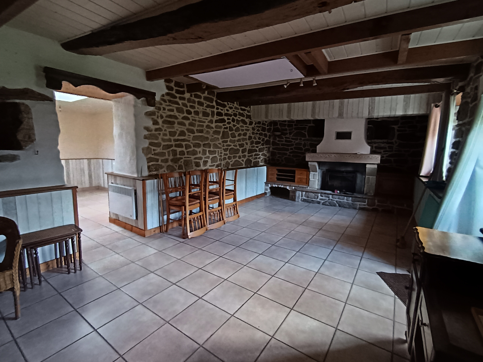 A l'extrémité dans un hameau authentique situé en centre Bretagne, tombez sous le charme de cette belle propriété ayant une longère typique et deuxième habitation type 'chalet'. Construite en granit et sous ardoises, l'habitation principale offre un séjour (pièce accessible au-dessus par un escalier escamotable); une cuisine aménagée, couloir avec buanderie, WC et douche. Ensuite vous arrivez dans une autre pièce avec mezzanine au-dessus. Attenante, une grande dépendance qui sert de bûcher et atelier. La pierre, des ouvertures en bois, belle cheminée au bois et des poutres apparentes; typique pour notre belle région. Un peu plus bas dans le terrain vous trouverez une deuxième petite habitation, très chaleureux avec son aménagement en bois. Hyper lumineux, le bien vous accueille par une pièce de vie sur cuisine ouverte avec salle d'eau/WC et passant par le balcon pour arriver dans un joli salon. Présence de terrasse, pourquoi pas mettre un jacuzzi et profiter de l'environnement? Il s'agit d'un produit atypique, rare sur le marché mais quand vous voyez ses atouts, vous seriez conquis! Un grand terrain de 5000 m² vient de compléter le bien avec petit cabanon. En-dessous du chalet, vous trouverez également deux garages avec portes motorisées et une autre dépendance en pierre pour le bois. Travaux à prévoir. Cadre bucolique, à ne pas manquer! Entretien toiture longère prévu prochainement.